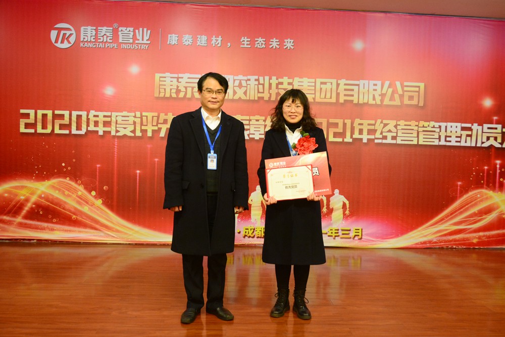 大會(huì)首先進(jìn)行第一項(xiàng)議程,先進(jìn)個(gè)人和集體表彰。集團(tuán)和成都子公司領(lǐng)導(dǎo)分別上臺(tái)宣讀各獎(jiǎng)項(xiàng)獲獎(jiǎng)人員和集體的名單并為他們進(jìn)行了頒獎(jiǎng)。2020年,康泰集團(tuán)應(yīng)對(duì)疫情挑戰(zhàn)、保持定力、改革創(chuàng)新、提升效率、開(kāi)拓進(jìn)取、真抓實(shí)干,把握行業(yè)政策的新變化和新形勢(shì),圓滿(mǎn)完成了各項(xiàng)工作任務(wù)指標(biāo),涌現(xiàn)了一大批團(tuán)結(jié)協(xié)作、開(kāi)拓進(jìn)取的先進(jìn)集體和愛(ài)崗敬業(yè)、勤奮工作的先進(jìn)個(gè)人。2021年是集團(tuán)“五五戰(zhàn)略”規(guī)劃的開(kāi)局之年,希望受到表彰的先進(jìn)單位和先進(jìn)個(gè)人要珍惜榮譽(yù),再接再厲,保持和發(fā)揚(yáng)精益求精、嚴(yán)謹(jǐn)專(zhuān)注、創(chuàng)新傳承的工匠精神,續(xù)寫(xiě)更大的輝煌。