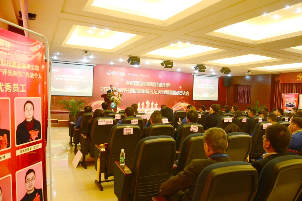 受新冠疫情的影響,原定1月舉行的2020年度年終表彰大會(huì)延期到3月舉行。下午1時(shí)30分,會(huì)議在嘹亮的《康泰之歌》中正式開(kāi)始。本次會(huì)議共有五項(xiàng)議程分別是,對(duì)2020年度先進(jìn)個(gè)人和集體進(jìn)行表彰,聽(tīng)取集團(tuán)領(lǐng)導(dǎo)的《集團(tuán)五五戰(zhàn)略規(guī)劃》報(bào)告、《2021年銷(xiāo)售規(guī)劃》報(bào)告、《2021年制造規(guī)劃》報(bào)告,最后是總結(jié)動(dòng)員講話(huà)。