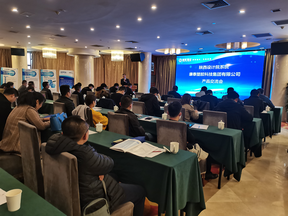會(huì)議的主要目的是,推廣康泰MPVE、PVC-O兩款新產(chǎn)品,提高康泰新產(chǎn)品在陜西設(shè)計(jì)系統(tǒng)的認(rèn)知性,加大設(shè)計(jì)上圖工作。同時(shí),推廣、宣傳康泰企業(yè)、康泰產(chǎn)品,傳播康泰品牌。下午3點(diǎn),會(huì)議正式開(kāi)始??堤┘瘓F(tuán)銷(xiāo)售中心西北大區(qū)總監(jiān)王金濤首先致辭,對(duì)各位領(lǐng)導(dǎo)、專(zhuān)家、設(shè)計(jì)師的撥冗蒞臨表示了熱烈的歡迎和誠(chéng)摯的感謝。