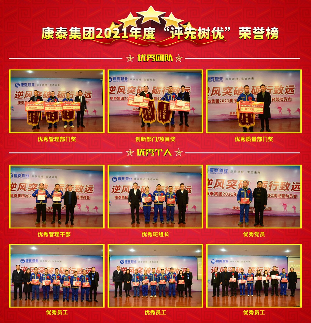 站在2022年的起點(diǎn)回望2021年,無疑是翻天覆地的一年。這一年,我們見證了國內(nèi)塑膠建材市場(chǎng)從高熱狀態(tài)到深度調(diào)整的轉(zhuǎn)變;這一年,我們也經(jīng)歷了“碳中和”、“工業(yè)限電”、“原材料上漲”給制造業(yè)帶來的變革加速。“思深方益遠(yuǎn),謀定而后動(dòng)?!睘榱俗吆?022年開局第一步,康泰集團(tuán)總部基地在新舊年份交接之際召開年會(huì),復(fù)盤過去一年的成果業(yè)績(jī)、工作難點(diǎn)及應(yīng)對(duì)策略,肯定了過去一年來取得的佳績(jī)并就此進(jìn)行了年度頒獎(jiǎng)。
