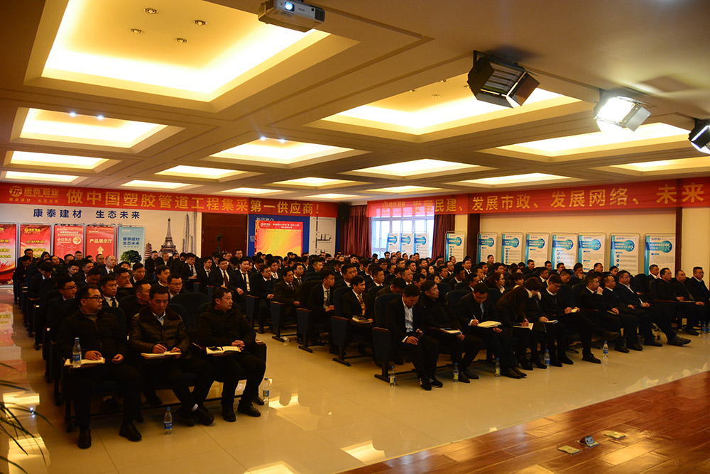 在全場熱烈的掌聲中,林總裁上臺作了熱情洋溢的新年致辭和動員講話。林總裁首先對集團公司在2018年取得的優(yōu)異業(yè)績向全體銷售人員的付出表示了感謝。林總裁表示,康泰的發(fā)展定位就是做中國工程集采第一供應(yīng)商,2019年是充滿挑戰(zhàn)的一年,也是為實現(xiàn)三年目標(biāo)打基礎(chǔ)的一年。我們要充分發(fā)揮三駕馬車——發(fā)展民建、發(fā)展網(wǎng)絡(luò)、發(fā)展市政的優(yōu)勢,切實做到品牌強大、技術(shù)強大、網(wǎng)絡(luò)強大、團隊強大,提升公司的核心競爭力。